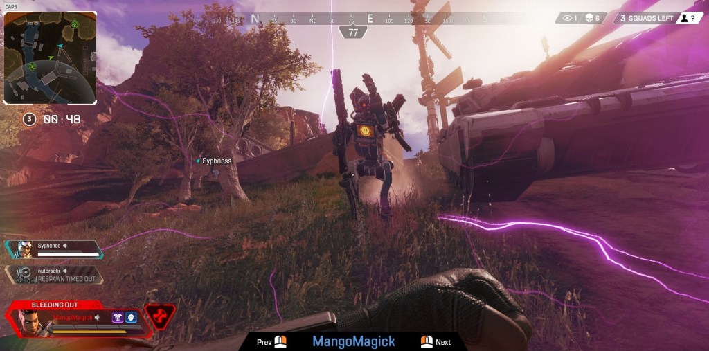 Apex Legends’ knockdown shield and its various tiers is an evolved form of PUBG’s Pan. Instead of a chanced based miracle it gives the player control over its use and fully protects the front; not to mention the gold tier self-revive. From a design perspective it is still a consequence as you are still downed with limited control, but it gives at least a small feeling of control and interactivity while downed. This adheres to my prefix players want to play even if in a small way. It is a design aspect which piggybacks off the observed behavior that players in such games as PUBG were already playing with the design mold of the knockdown system. Ultimately the knockdown shield makes an otherwise not fun experience, slightly more fun.