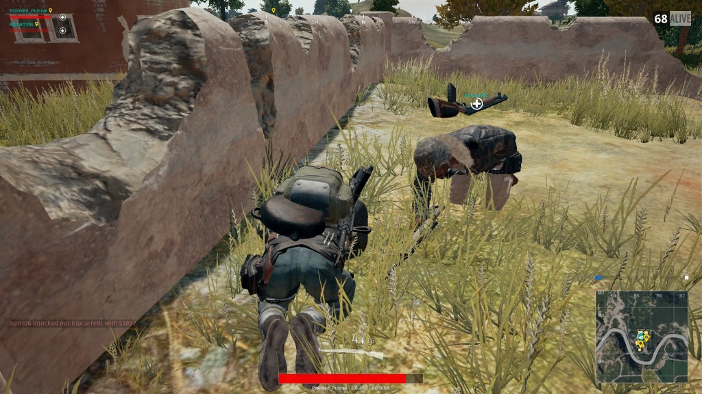 PUBG players know all too well the helpless and sometimes hilarious feeling of being downed and slowly crawling around nibbling the toes of your more able comrades. I will prefix by saying that as a general rule, players want to play. Being downed in a battle royal from a design perspective is a consequence for being shot. Consequences set up difficulty or challenge which is essential for the creation of fun. We understand things by contrast. Fun is framed by what is not fun, i.e. being stripped of almost all control while downed. On paper it is reasonable to set up reward and consequence designs for the purpose of manipulating behavior, rules of the game and the creating fun.